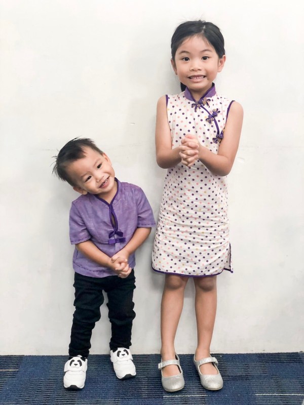 Four days before Chinese New Year, Lia reminded me that I promised to sew a cheongsam for her Chinese New Year party at school. I then reminded her that I had already borrowed her cousin’s cheongsam, but she insisted that I said I would find “metallic purple and gold” fabric.