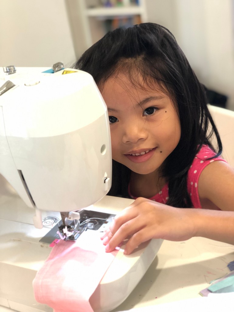 Lia wanted to help out and did the basting stitch to gather the manes.