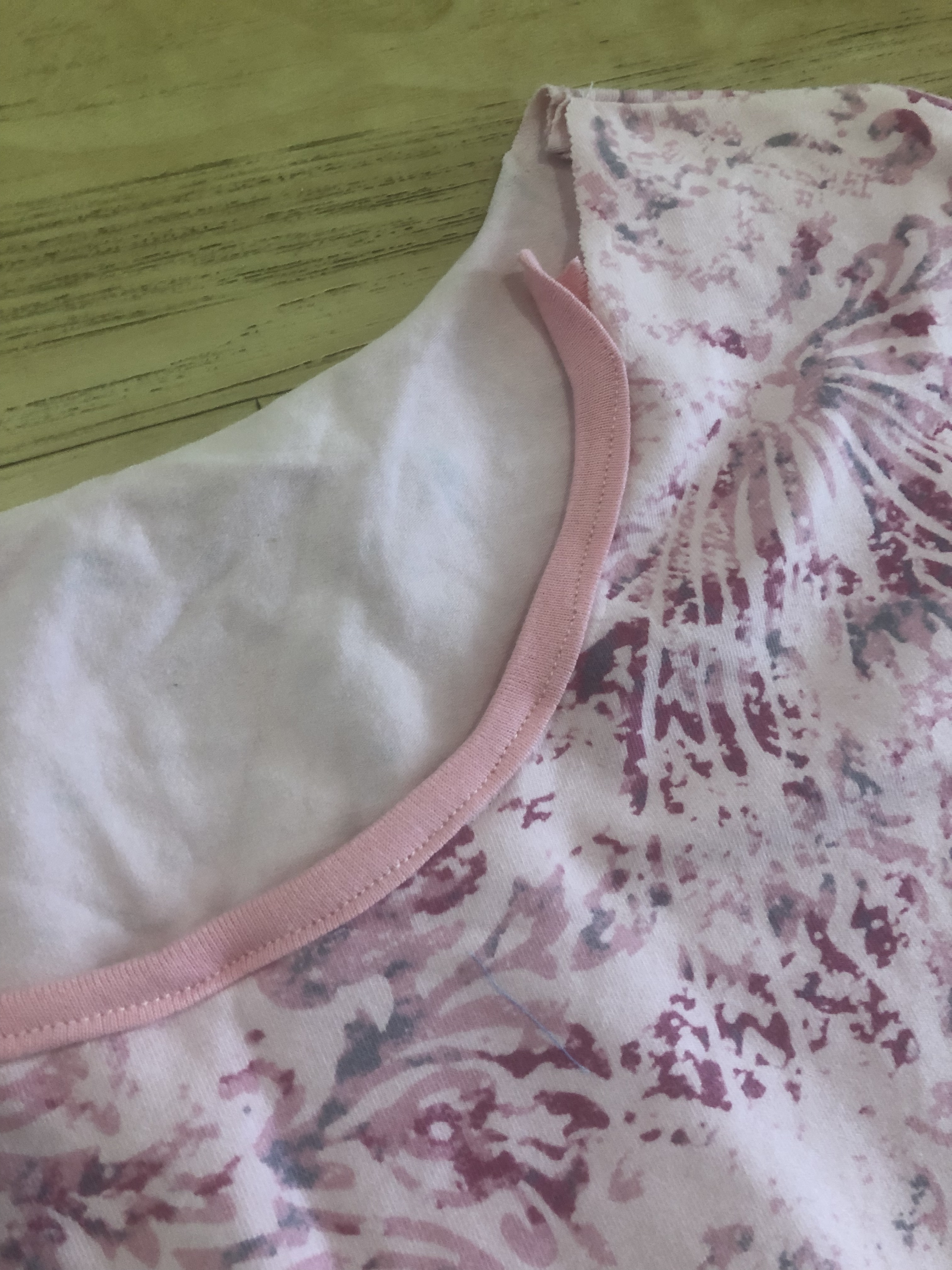 For the first fit test, I thought I would upcycle a top I made when I first started sewing. I wore it once – did not like the neckline and tried to bind it after.