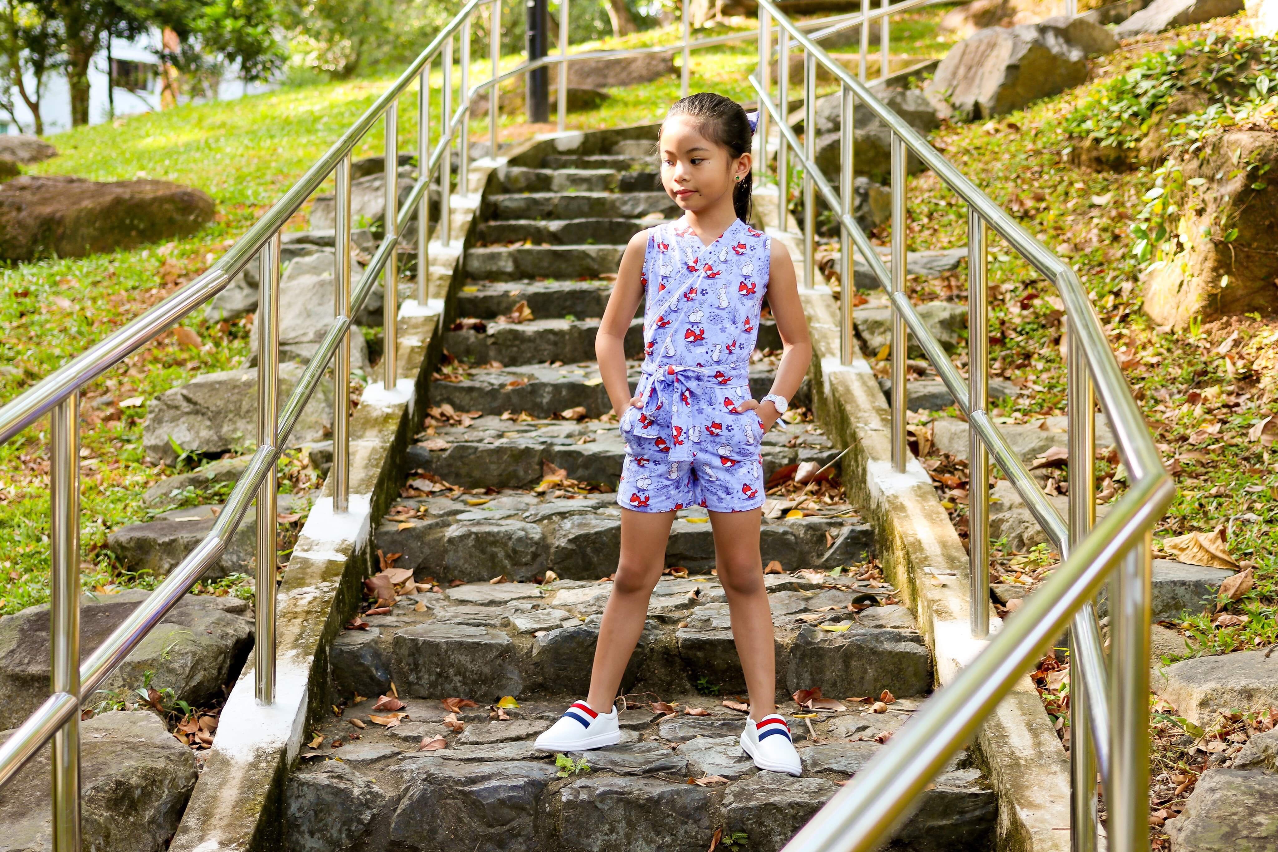 I tried applying to be a tester a few times before but never got picked until last month to test the South-shore romper for kids by Ellie and Mac. I have the similar pattern for adults – planning to make one for my sister-in-law for Christmas – but did not have the guts to sew one for myself. I thought if I got the kid version, Lia and I could match.