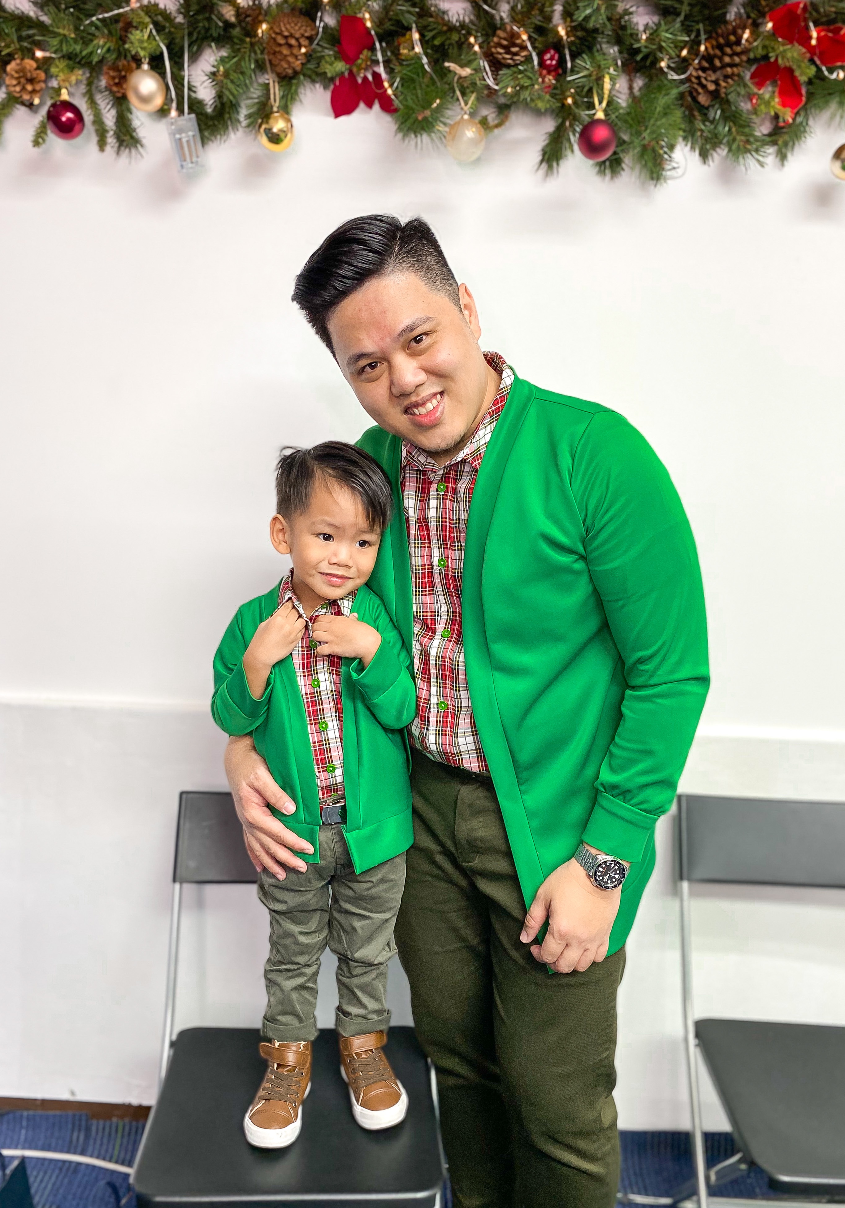 I originally bought green and red cotton jersey at Spotlight to make the cardigans, but when we got home, Sidney said he wanted something thicker. It wasn’t wasted because the green went to the Christmas onesies I made, while the red will be used for future projects.